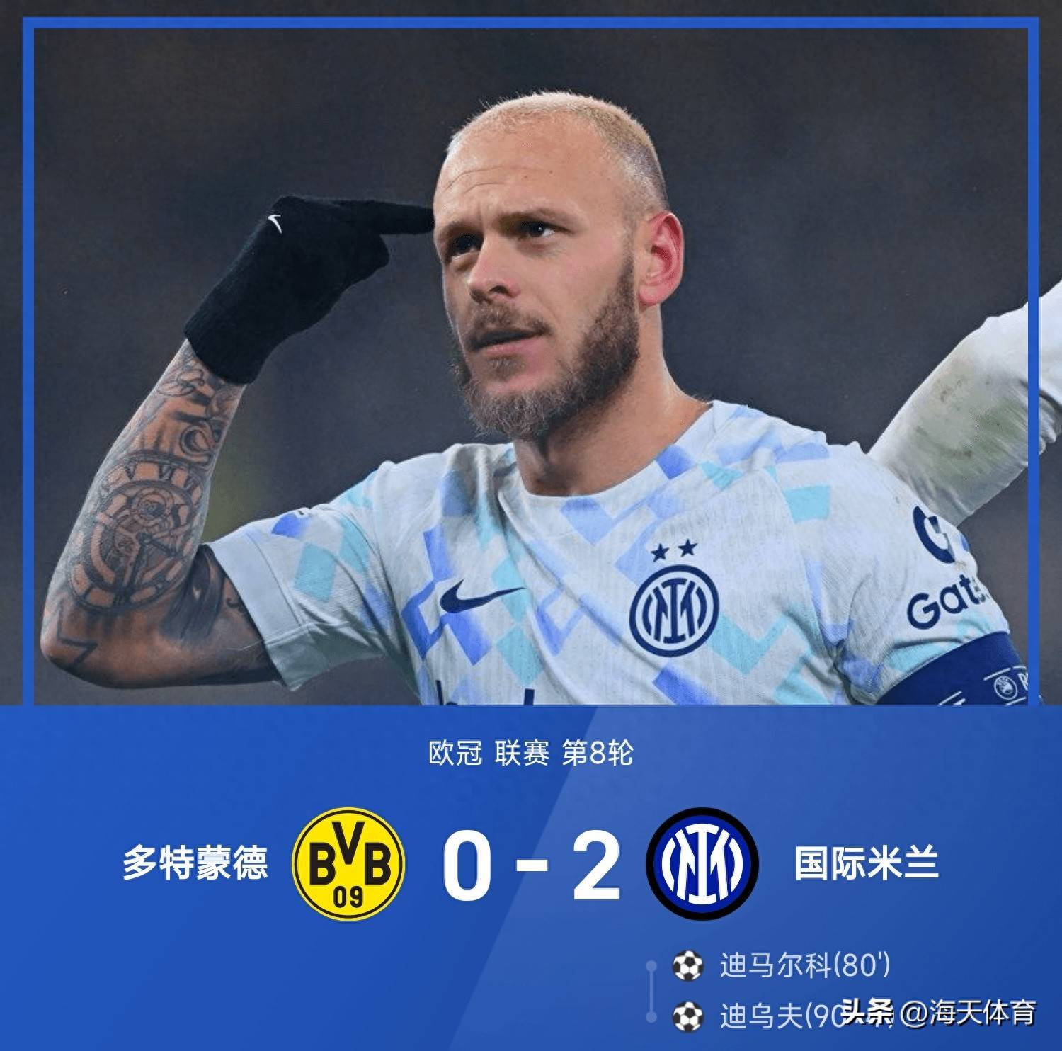 แชมเปียนส์ลีก! ดิ มาร์โกทำสองประตู, ดิอุฟยิงประตู! อินเตอร์ถล่มดอร์ทมุนด์ ทั้งสองทีมคว้าตั๋วเข้ารอบเพลย์ออฟ_บาเยิร์น มิวนิค_เซเรีย อา_โบรุสเซีย ดอร์ทมุนด์