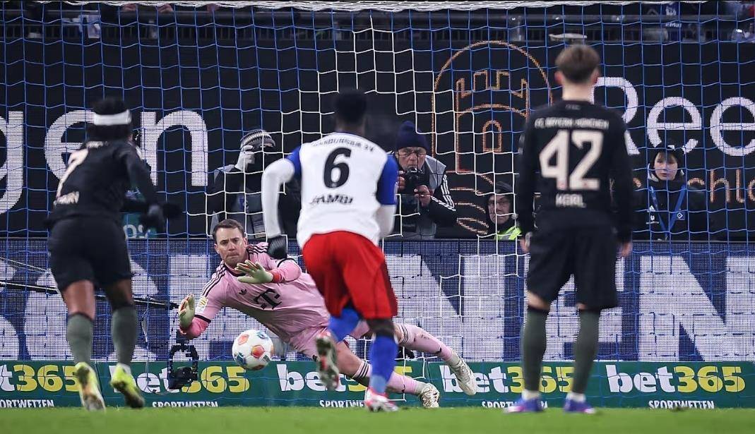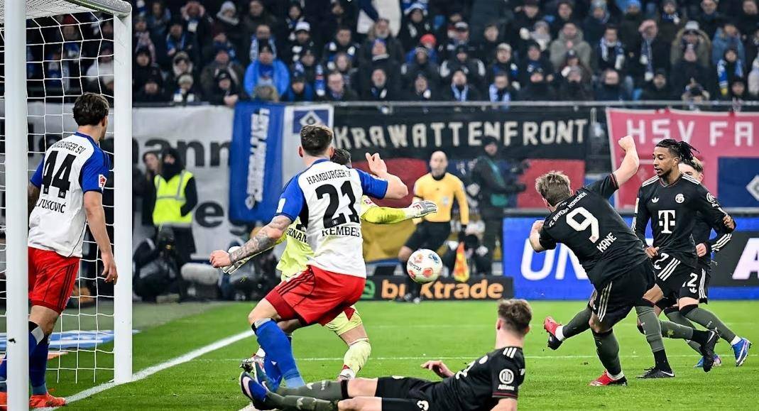 การตัดสินให้จุดโทษจุดนี้ก่อให้เกิดการถกเถียงอย่างมากหลังจบการแข่งขัน การดูภาพช้าแสดงให้เห็นว่าไม่มีการปะทะที่ชัดเจนระหว่างผู้เล่น อย่างไรก็ตาม ผู้ตัดสินเลือกที่จะไม่ปรึกษากับ VAR และยืนยันการตัดสินเดิมของเขา อดีตนักเตะอาร์เซนอล ฟาบิโอ วิเอร่า ยิงจุดโทษเข้าไป ทำให้ฮัมบูร์กขึ้นนำ 1-0 อย่างไรก็ตาม บาเยิร์นตอบโต้อย่างรวดเร็วในนาทีที่ 42 เซอร์จ์ กนาบรี ส่งบอลต่ำจากทางฝั่งซ้าย ฮาเรีย คีน ซึ่งอยู่ใกล้เสาแรกอย่างเฉียบแหลม หมุนตัวอย่างรวดเร็วและซัดบอลเข้าประตูไป ทำให้สกอร์เสมอกันสำหรับบาเยิร์น นี่ถือเป็นประตูที่ 22 ของคีนในบุนเดสลีกาฤดูกาลนี้ ทำให้เขายังคงครองตำแหน่งผู้นำในตารางคะแนนสูงสุดอย่างเหนียวแน่น