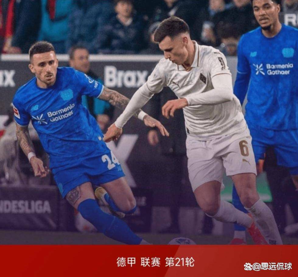 ในทางกลับกัน การแข่งขันระหว่างไบเออร์ เลเวอร์คูเซ่น และโบรุสเซีย มึนเช่นกลัดบัค เป็นที่คาดหวังอย่างกว้างขวางว่าจะเป็นการแข่งขันที่แสดงถึงความแตกต่างของศักยภาพอย่างมาก แม้ว่าเลเวอร์คูเซ่นจะครองบอลได้ถึง 61% แต่กลัดบัคกลับเป็นฝ่ายทำประตูแรกได้ก่อนจากเอ็นเกลฮาร์ดท์ในนาทีที่ 10ตลอดการแข่งขัน เลเวอร์คูเซ่นสามารถยิงเข้ากรอบได้น้อยกว่าเจ้าบ้าน จนกระทั่งนาทีที่ 44 ที่พวกเขาตีเสมอได้จากประตูตัวเองของแซนเดอร์ กองหลังของมึนเช่นกลัดบัค ซึ่งเป็นของขวัญจากฝั่งเจ้าบ้าน ครึ่งหลังเป็นเกมที่สูสีและดุเดือดมาก โดยผู้ตัดสินแจกใบเหลืองถึง 6 ใบภายในระยะเวลา 20 นาทีผู้จัดการทีมไบเออร์ เลเวอร์คูเซ่น ชาบี อลอนโซ่ ทำท่าทางไม่หยุดจากข้างสนามเพื่อให้ทีมบุกไปข้างหน้า แต่การโต้กลับของกลัดบัคยังคงคุกคามอย่างต่อเนื่อง โอกาสหนึ่งต่อหนึ่งของคาสโตรในนาทีที่ 68 ถูกผู้รักษาประตูของเลเวอร์คูเซ่นปฏิเสธ ในที่สุดสกอร์ 1-1 ก็คงอยู่จนถึงเสียงนกหวีดสุดท้าย จบการชนะติดต่อกันสี่นัดของเลเวอร์คูเซ่น และทำให้กลัดบัคไม่แพ้ใครสองนัดติดต่อกัน