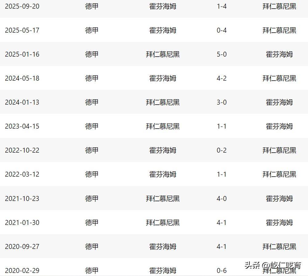ในการพบกัน 12 นัดหลังสุดในบุนเดสลีกา บาเยิร์น มิวนิค ครองความเหนือกว่าด้วยชัยชนะ 8 นัด เสมอ 2 นัด และแพ้ 2 นัด นอกจากนี้ ในการพบกัน 3 นัดล่าสุดกับฮอฟเฟ่นไฮม์ พวกเขาทำได้ไม่น้อยกว่า 4 ประตูในแต่ละนัด รวมผลประตูรวมที่น่าทึ่งถึง 13-1