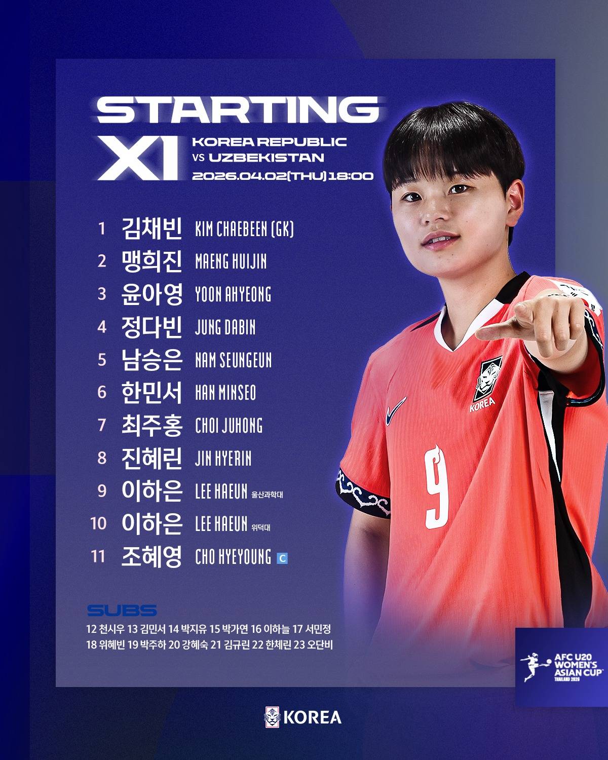 สิ่งที่แนบมา : ฟุตบอลหญิง U20 ของเกาหลีใต้นัดแรกกับรายการอุซเบกิสถาน