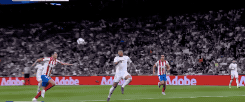 ในนาทีที่ 42 Karvajal ทำประตูจากปีก Mbappe กระโดดสูงและ ferred และ Vinicius มุ่งหน้าไปข้างหน้าอย่างอดทนต่อหน้าประตูพลาดโอกาส