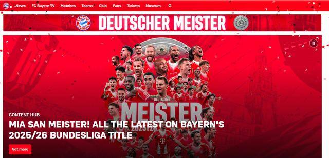 หน้าแรกของเว็บไซต์ทางการของบาเยิร์นฉลองแชมป์