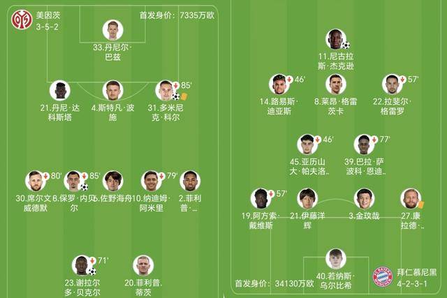 เมื่อเวลา 21:30 น. ของวันที่ 25 เมษายน ตามเวลาปักกิ่ง ในรอบที่ 31 ของบุนเดสลีกา 25-26 ทีมที่ 10 ไมนซ์ เล่นในบ้านกับบาเยิร์น ยิง 3 ประตูติดต่อกันในครึ่งแรก