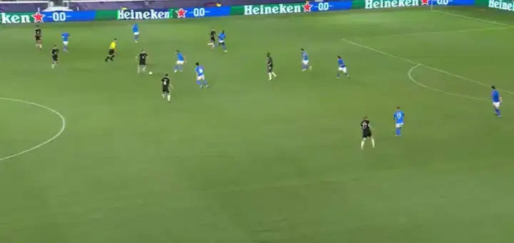 ระหว่างการแข่งขัน เราได้เห็นการโจมตีของปารีสหลายครั้งที่มีจุดเริ่มต้นจากริมเส้น โดยมีผู้เล่นตัดเข้าจากพื้นที่กว้าง กองหน้าตัวเป้าถอยลึกลงมา ดึงกองหลังตัวกลางของฝ่ายตรงข้ามออกจากตำแหน่ง ทำให้เกิดช่องว่างขนาดใหญ่ในพื้นที่กว้าง