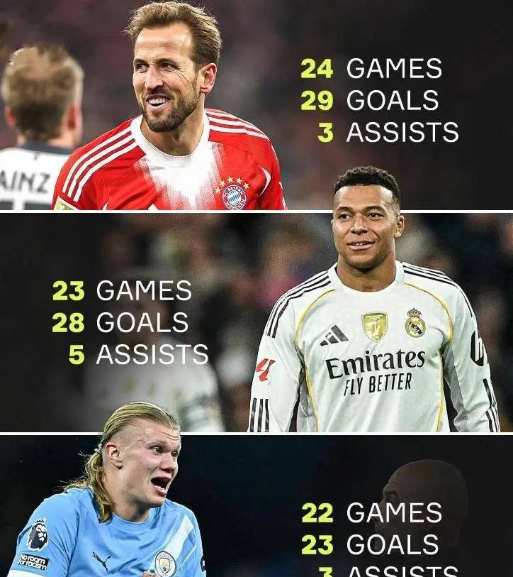 ในฐานะกองหน้าสามคนที่ได้รับการต้องการมากที่สุดในวงการฟุตบอลโลกในปัจจุบัน ฮาลันด์, เอ็มบัปเป้ และเคน ยังคงทำผลงานที่น่าทึ่งอย่างต่อเนื่องในฤดูกาลนี้ พิสูจน์ให้เห็นว่าแทบจะหยุดยั้งไม่ได้ จนถึงปัจจุบัน กองหน้าชั้นยอดเหล่านี้ยังคงรักษาค่าเฉลี่ยการทำประตูมากกว่าหนึ่งประตูต่อเกมในลีกและการแข่งขันต่างๆ ที่พวกเขาลงเล่น แสดงให้เห็นถึงความสามารถในการโจมตีที่น่าเกรงขามและพลังการทำประตูที่ต่อเนื่อง