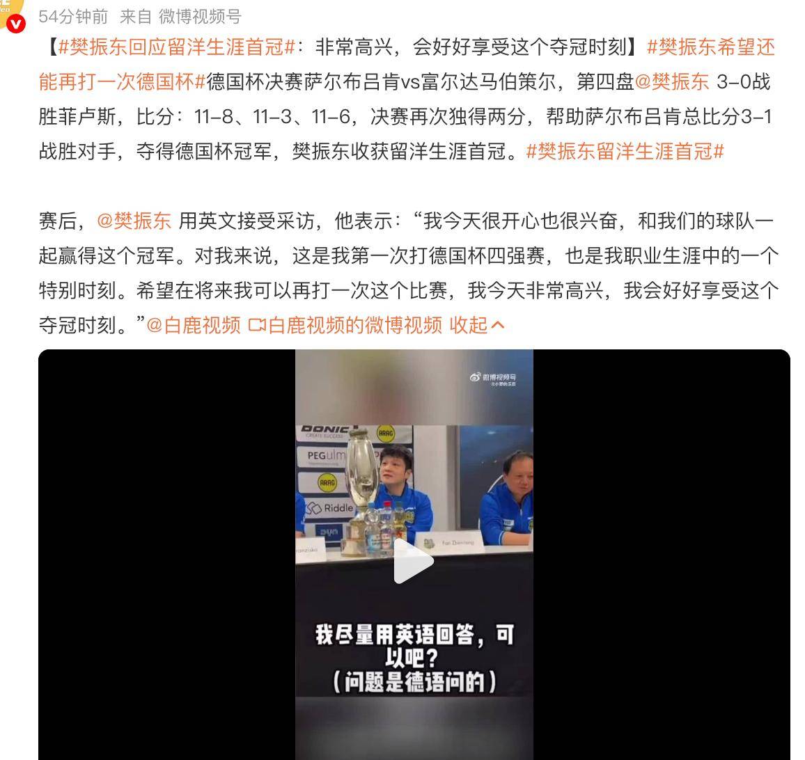 ฟาน เจินตง กล่าวถึงแผนในอนาคตหลังคว้าแชมป์ คำพูดสัมผัสใจโค้ชและเพื่อนร่วมทีม แฟนๆ เข้าใจ_การแข่งขัน_เยอรมนี