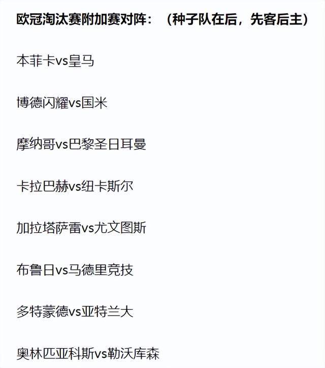 เมื่อวันที่ 30 มกราคม เวลาปักกิ่ง ได้มีการจับสลากประกบคู่ในรอบเพลย์ออฟของยูฟ่าแชมเปียนส์ลีก โดยเรอัล มาดริดจะพบกับเบนฟิก้า และอินเตอร์ มิลานจะพบกับโบโด/กลิมท์ แม้ว่าทั้งเรอัล มาดริดและอินเตอร์ มิลานจะอยู่ในกลุ่มสโมสรชั้นนำของยุโรป แต่โอกาสที่ทั้งสองทีมยักษ์ใหญ่จะผ่านเข้ารอบต่อไปดูเหมือนจะค่อนข้างไม่แน่นอน