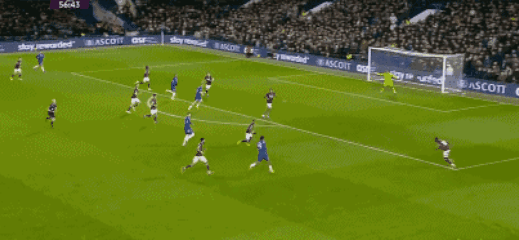 เวสต์แฮม ยูไนเต็ด ขยายความได้เปรียบอีกครั้งในนาทีที่ 36 วาน-บิสซาก้า ส่งบอลย้อนจากทางฝั่งขวา และซามูเอลสันที่วิ่งเข้ามาอย่างเร็วได้ยิงเต็มข้อทันที บอลพุ่งผ่านซานเชซที่เสาแรกเข้าไปอีกครั้ง ส่งผลให้ขุนค้อนกลับเข้าสู่ห้องแต่งตัวในครึ่งแรกด้วยสกอร์นำสองประตู