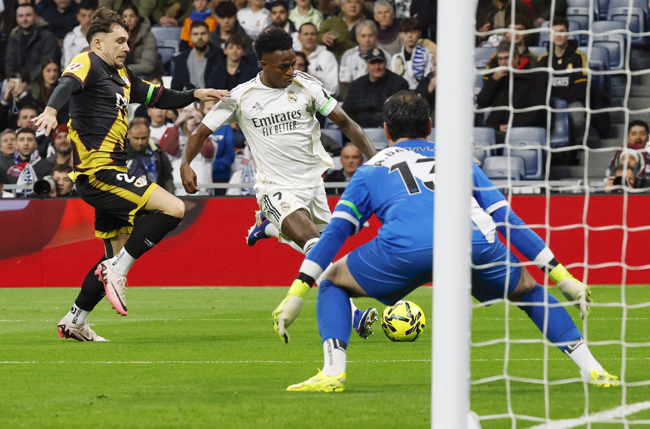 เมื่อวันที่ 1 กุมภาพันธ์ นักเตะเรอัล มาดริด วินิซิอุส (กลาง) ระหว่างการแข่งขัน. ชินหัว/อีพีเอ