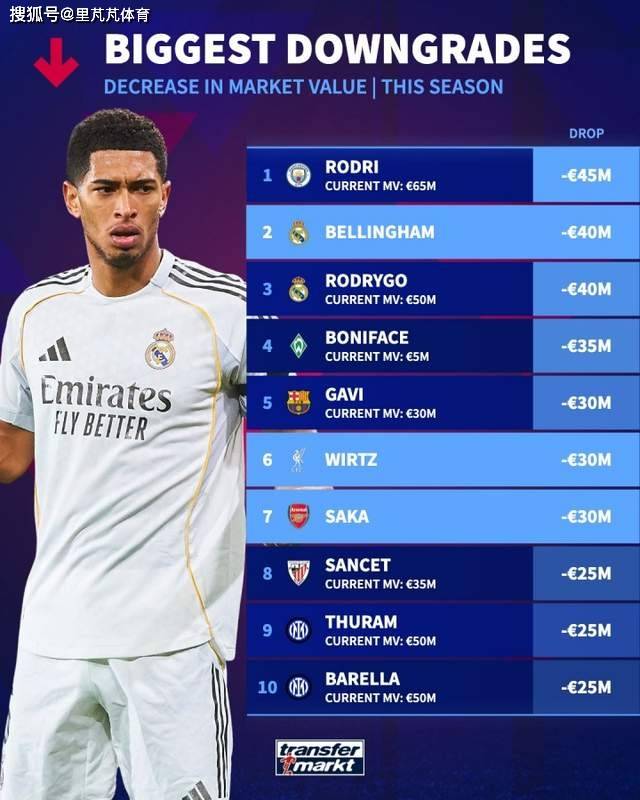 แผ่นเสียงของเยอรมันกำลังลดลงของผู้เล่นในปัจจุบันในฤดูกาลนี้ ซึ่ง Rodri ลดลง 45 ล้านยูโร และ Belling และ Rodrigo ลดลง 40 ล้านยูโร