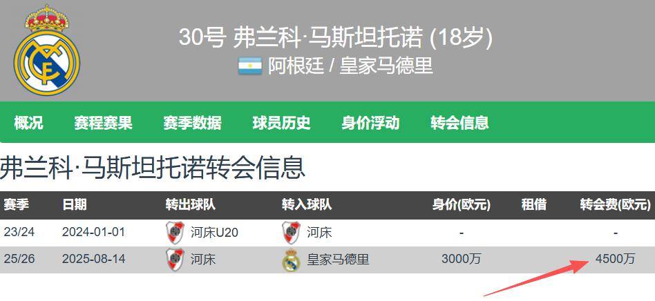 ในปี 2025 เรอัล มาดริดได้แนะนำ Mastano วัยรุ่นชาวอาร์เจนตินาจากแม่น้ำด้วยค่าธรรมเนียมการโอนมากกว่า 60 ล้านยูโรในช่วงฤดูร้อนปี 2025 ในเวลานั้นราคาเทิร์นของผู้เล่นชาวเยอรมันอยู่ที่ 30 ล้านยูโร ปัจจุบันเรอัล มาดริด ได้จ่ายเงิน 45 ล้านยูโร นี่เป็นกรณีทั่วไปของการแนะนำผู้เล่นที่มีความสามารถรุ่นเยาว์ในระดับพรีเมียม หลังจากที่ Mastano เข้าร่วมกับ Real Madrid เขาถูกนำกลับมาใช้ใหม่โดยโค้ชคนใหม่ Alonso และถือว่าเขาเป็น "Wilz" ของ Bernabeu แต่ Mastano ล้มเหลวในความรักของ Alonso และผลงานของเขานั้นปานกลางแม้จะยากจนเล็กน้อย อลอนโซ่ปฏิเสธสิทธิ์ของผู้เล่นพิเศษ แต่เขายังคงเสียสิทธิ์ให้กับผู้เล่นพิเศษ แต่เขาก็ยังอยู่ในสภาพที่ซบเซา