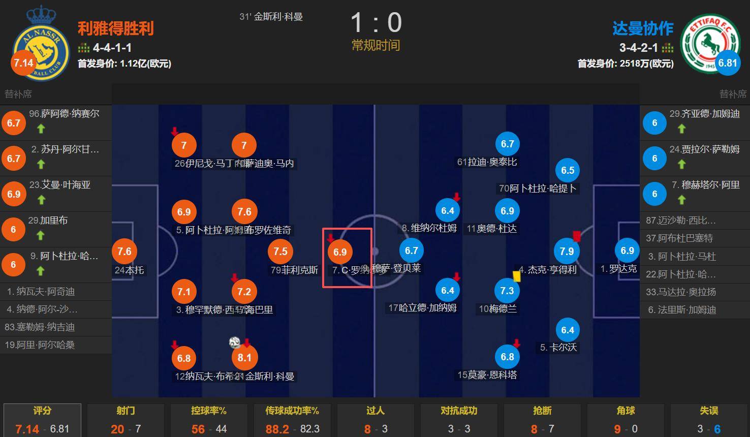 1-0! ข่าวดี: ริยาชนะ 8 แต้มเพื่อเป็นผู้นำข่าวร้าย: โรนัลโด้เริ่มโง่ + คะแนนต่ำ_Damman_cooperation_saudi