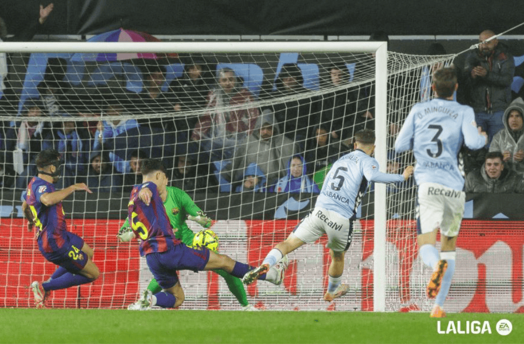 การปล่อยโอกาสหลุดลอยอาจกลายเป็นความเสียหายในไม่ช้า ในนาทีที่ 11 เช่นเดียวกับเกมแชมเปียนส์ลีกกลางสัปดาห์ที่ผ่านมา กับดักล้ำหน้าของบาร์เซโลนาพลาดอีกครั้ง เซร์คิโอ คาร์เรโร่ หลุดเดี่ยวเข้าไปดวลกับผู้รักษาประตูและยิงเข้าไปอย่างเยือกเย็น ทำให้เซลต้าตีเสมอได้ทันที