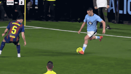 ในนาทีที่ 43 เซลต้า บีโก้ เปิดเกมรุกอีกครั้ง โดยแนวรับของบาร์เซโลน่าแสดงให้เห็นช่องว่างอีกครั้ง อิเกลเซียสที่ไร้การประกบอยู่บริเวณขอบเขตโทษยิงเข้าประตูไป