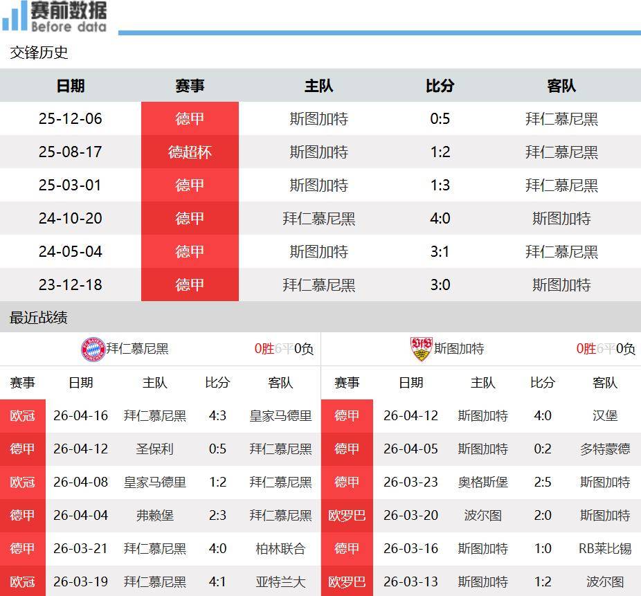 ก่อนสถานการณ์ของทั้งสองทีม! หลังจบบอล 29 นัด บาเยิร์นชนะ 24 เสมอ 4 แพ้ 1 แต้ม 76 แต้ม 12 แต้มนำหน้าอันดับ 2 และเหลือเพียง 5 รอบ ซึ่งหมายความว่าบาเยิร์นสามารถคว้าแชมป์ได้อีก 1 แต้ม สตุ๊ตการ์ท 17 ชนะ 5 แพ้ 56 แต้ม 2 แต้ม นำหน้าอันดับที่ 5 และอันดับ 4 อันดับ 1 จะเป็นฝ่ายแรกที่ขึ้นนำ ในรอบสุดท้ายของบุนเดสลีกาบาเยิร์นเอาชนะเซนต์เปาลี 5-0 และแชมเปี้ยนส์ลีกในช่วงกลางสัปดาห์ที่ 4-3 ที่บ้านและผ่านเข้าสู่รอบรองชนะเลิศในรูปแบบของการสังหารสองครั้ง สตุตการ์ตเอาชนะฮัมบูร์ก 4-0 ที่บ้านและชนะ 3 นัดสุดท้ายและรัฐก็ดีมาก