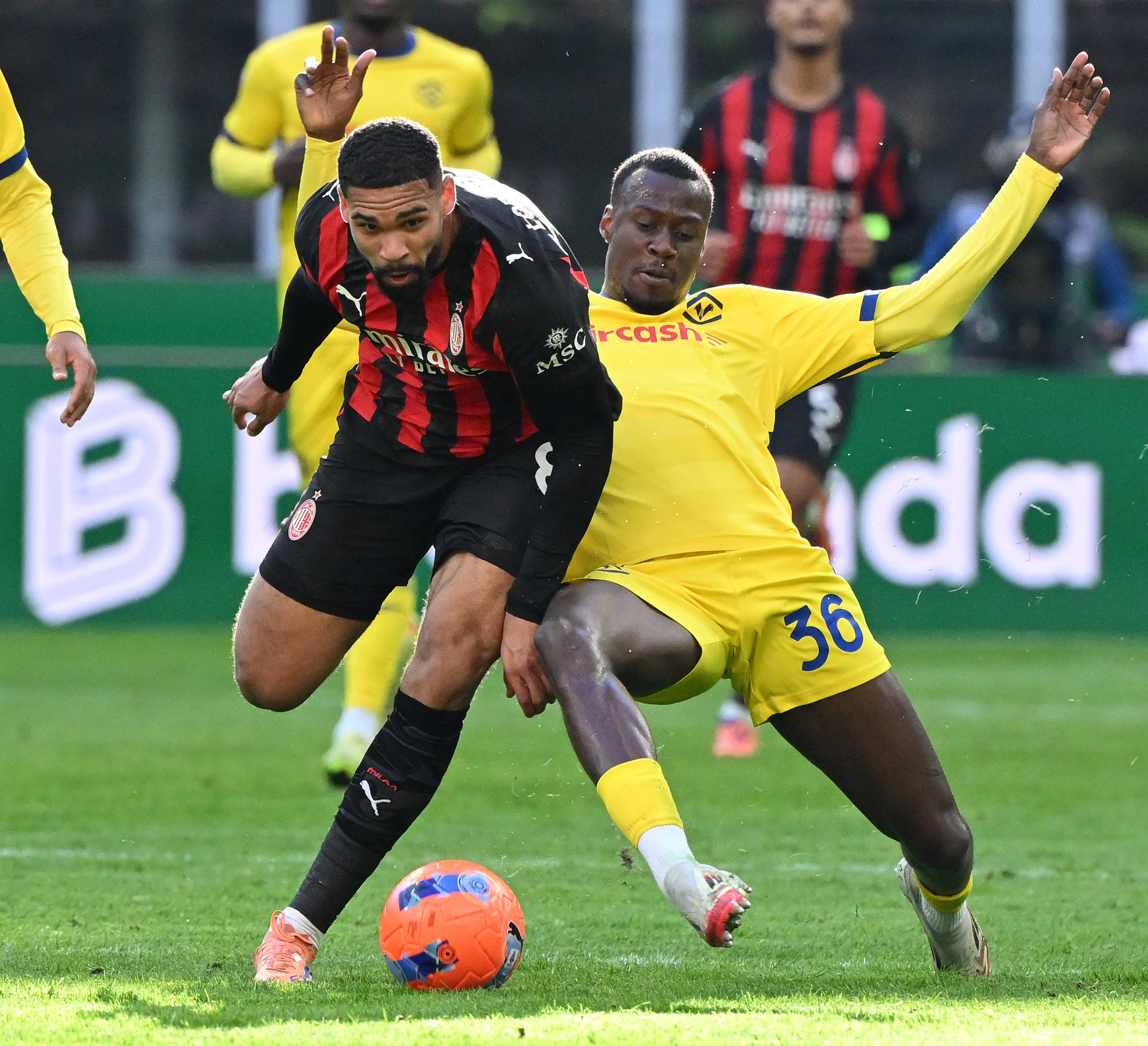 เมื่อวันที่ 28 ธันวาคม, ลอฟตัส-ชีค ของเอซี มิลาน (ซ้าย) ท้าทาย นิอาสเซ ของเวโรนา ระหว่างการแข่งขัน. สำนักข่าวซินหัว (ภาพโดย อัลแบร์โต ลิงเกีย)