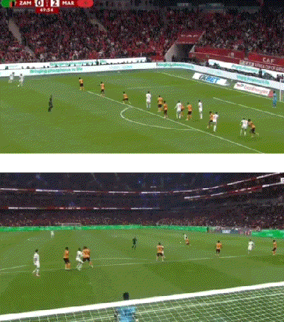 ในนาทีที่ 5 ของครึ่งหลัง อูนาฮีส่งบอลอย่างยอดเยี่ยม ทำให้คาบีสามารถเข้าหาบอลใกล้จุดโทษด้วยการตีลังกายิงลูกที่พุ่งเข้าประตูอย่างสวยงามที่มุมบนสุดของประตู เป็นการยิงระดับโลกที่น่าทึ่ง ซึ่งทำให้โมร็อกโกนำห่างเป็นสองเท่า โดยคาบีทำประตูที่สองของเขาได้สำเร็จ นี่เป็นการทำประตูด้วยการตีลังกายิงครั้งที่สองของคาบีในศึกแอฟริกา คัพ ออฟ เนชั่นส์ ครั้งนี้ - สวยงามราวกับมังกรที่ล่องลอยผ่านน้ำและน่าตื่นตาตื่นใจราวกับนกกระเรียนที่บินผ่านท้องฟ้า ราบรื่นอย่างที่สุด