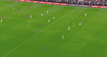 ในนาทีที่ 30 บาร์เซโลนาได้ทำการผ่านบอลอย่างลื่นไหล ราฟินญาได้ส่งบอลข้ามไปทางฝั่งตรงข้าม เฟร์มินได้รับบอลโดยไม่มีใครประกบและยิงบอลเข้ามุมไกลอย่างสวยงาม
