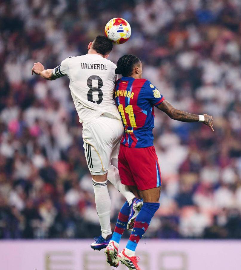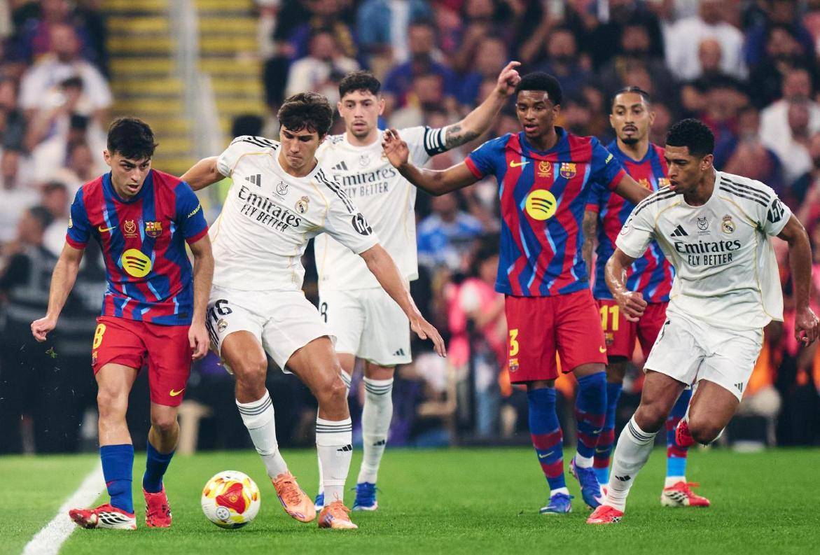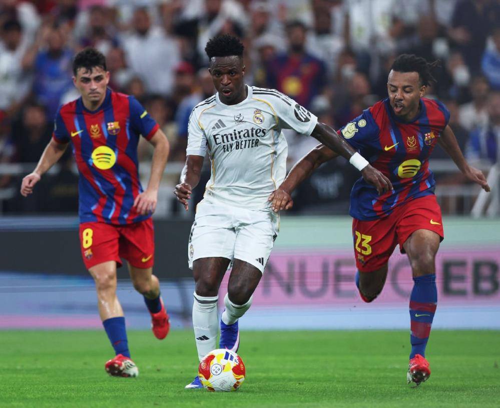 เมื่อผู้ตัดสินเป่านกหวีด ทั้งสองฝ่ายก็เริ่มเข้าสู่ท่าเตรียมพร้อมโจมตีทันที ในนาทีที่ 34 ยามาลส่งบอลอย่างสวยงามน่าเสียดาย ราฟินญ่าพลาดโอกาสทองในการทำประตูแบบตัวต่อตัวด้วยการยิงหลุดกรอบออกไป อย่างไรก็ตาม ภายในเวลาเพียงสองนาที เขาก็แก้ตัวได้สำเร็จด้วยการเลี้ยงบอลขึ้นทางฝั่งซ้ายก่อนตัดเข้าในกรอบเขตโทษและยิงบอลต่ำเสียบมุมไกลเข้าไปให้บาร์เซโลนาขึ้นนำ 1-0 ในนาทีที่ 47 วินิซิอุสโต้กลับด้วยการเลี้ยงบอลผ่านแนวรับของบาร์เซโลนาทั้งทีมทางฝั่งซ้ายอย่างเหนือชั้น ก่อนจะโชว์ความยอดเยี่ยมส่วนตัวยุติการรอคอยประตูสามเดือนด้วยการยิงตีเสมอเป็น 1-1