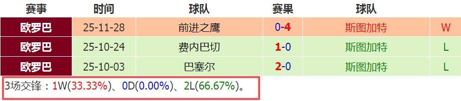ทั้งสองทีมมีสถิติชนะสี่ครั้งและแพ้สองครั้งในขณะนี้ แม้ว่าสตุ๊ตการ์ทจะมีประตูได้เสียที่ดีกว่าสองประตูก็ตาม ผลงานของพวกเขามีความแตกต่างบ้าง: โรม่าชนะทั้งสามนัดเยือนในฤดูกาลนี้ของศึกยุโรป ขณะที่การแพ้สองครั้งของพวกเขามาจากการเล่นในบ้าน – แพ้ลีลล์ 0-1 และแพ้เพลเซนต์ 1-2 นี่เป็นการแพ้ในบ้านติดต่อกันครั้งแรกของโรม่าในรายการนี้ อย่างไรก็ตาม ชัยชนะ 2-1 เหนือมิดทิลลันด์ที่อยู่ในอันดับสองล่าสุดได้ช่วยให้สถานการณ์ของพวกเขามีความดีขึ้นฤดูกาลที่แล้ว โรม่าก็เข้าร่วมในรอบยูโรปาลีกเช่นกัน และในที่สุดก็สามารถผ่านเข้ารอบเพลย์ออฟได้ นับตั้งแต่นั้นเป็นต้นมา สถิติการเล่นในบ้านของพวกเขามีชัยชนะ 6 นัด เสมอ 1 นัด และแพ้ 2 นัด นอกเหนือจากความพ่ายแพ้สองนัดนั้นแล้ว อัตราการชนะในบ้านของพวกเขายังคงสูงมาก ในทางกลับกัน สตุ๊ตการ์ทมีสถิติการเล่นในบ้านในยุโรปติดต่อกันสามนัด แต่ฟอร์มการเล่นนอกบ้านของพวกเขามีชัยชนะเพียง 1 นัด และแพ้ 2 นัด – แพ้ให้กับบาเซิลและเฟเนร์บาห์เช นัดล่าสุดที่พวกเขาเล่นนอกบ้าน พวกเขาสามารถเอาชนะคาชิว่า เรย์โซลได้อย่างถล่มทลาย 4-0 หยุดแนวโน้มการแพ้ต่อเนื่องของพวกเขา