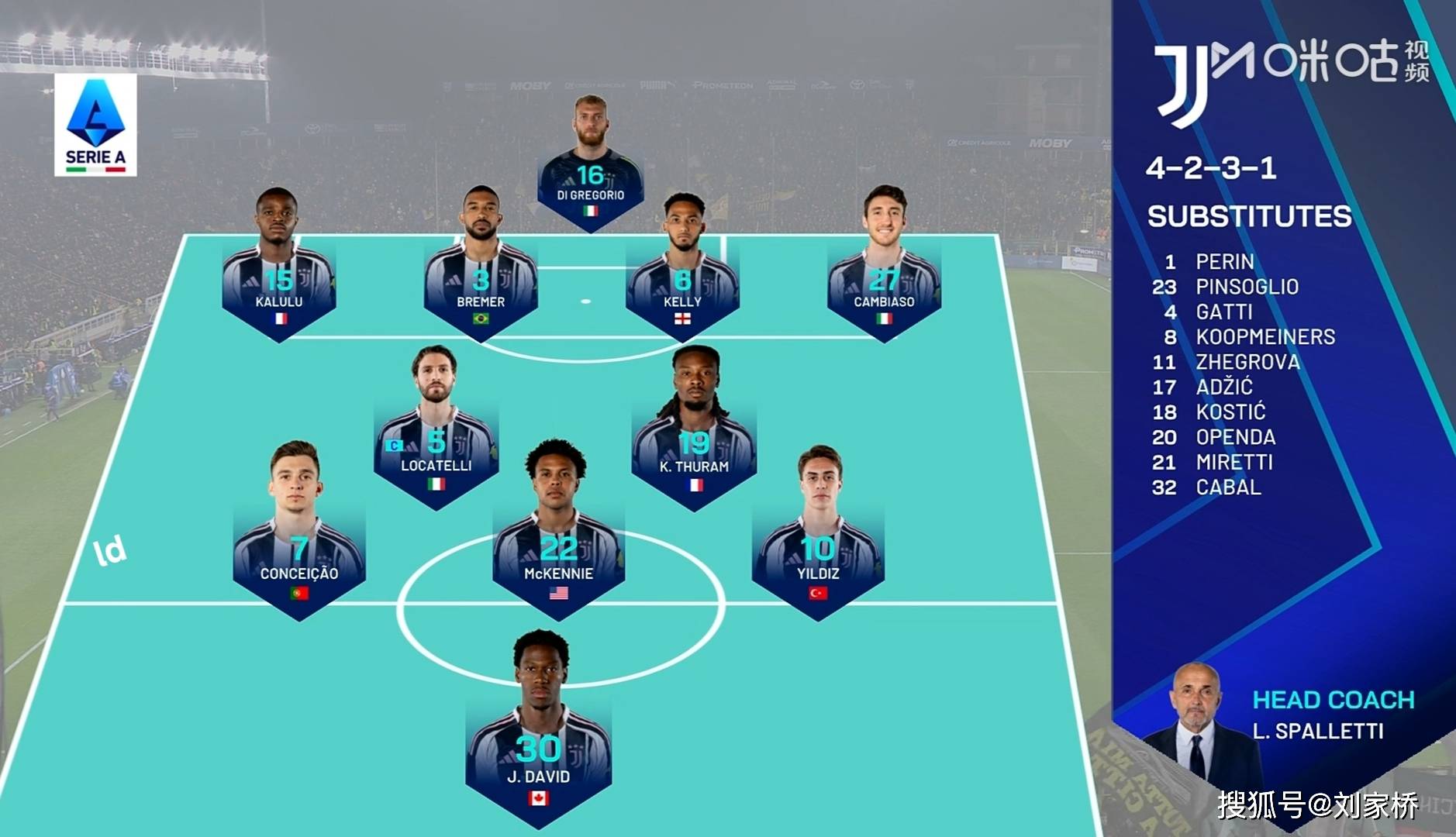ในนาทีที่ 81 ยูเวนตุสทำการเปลี่ยนตัวผู้เล่นครั้งสุดท้าย ส่งโอพอนดาลงสนาม พร้อมทรงผมใหม่ แทนที่ดาวิด ผู้ทำประตูในเกมนี้