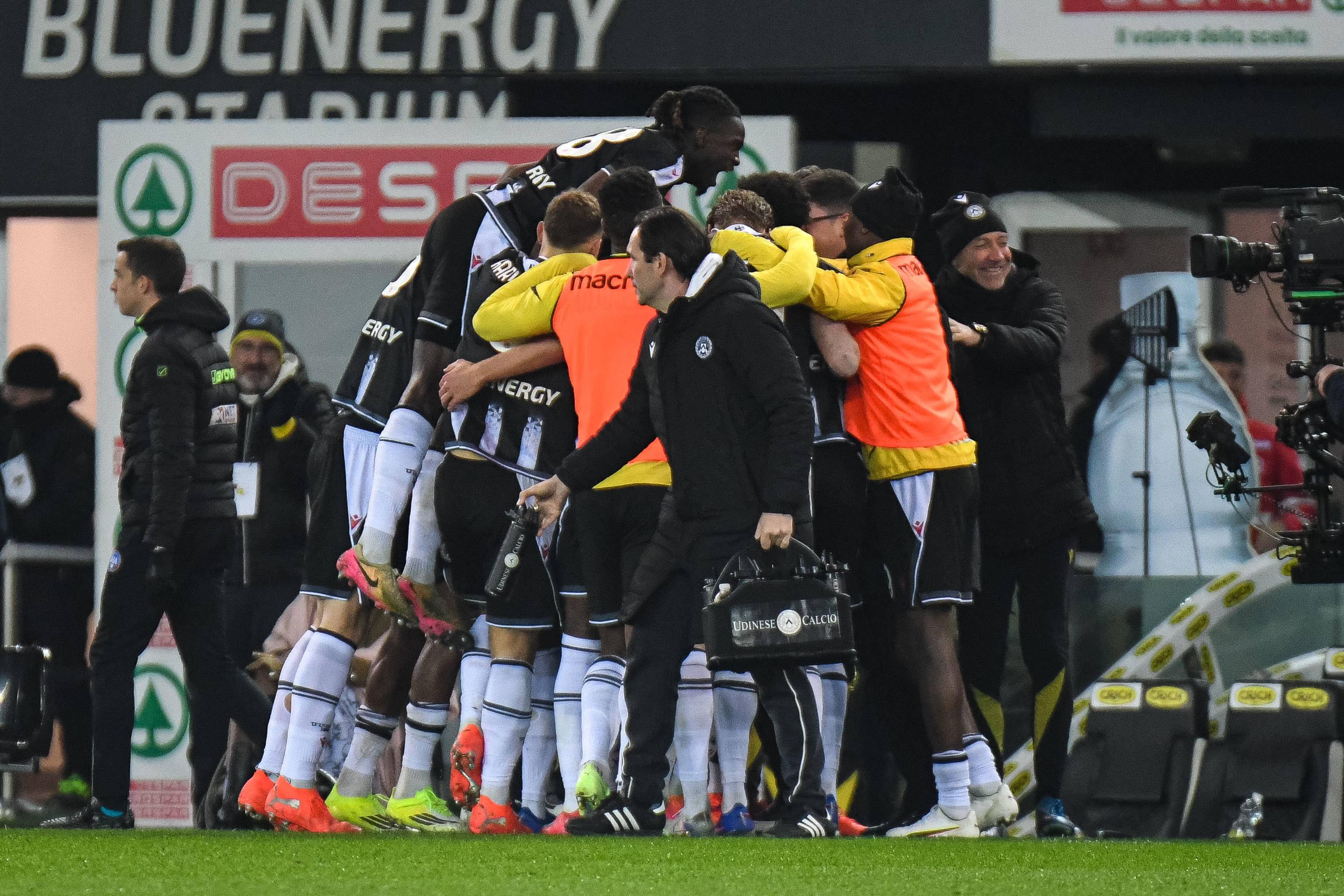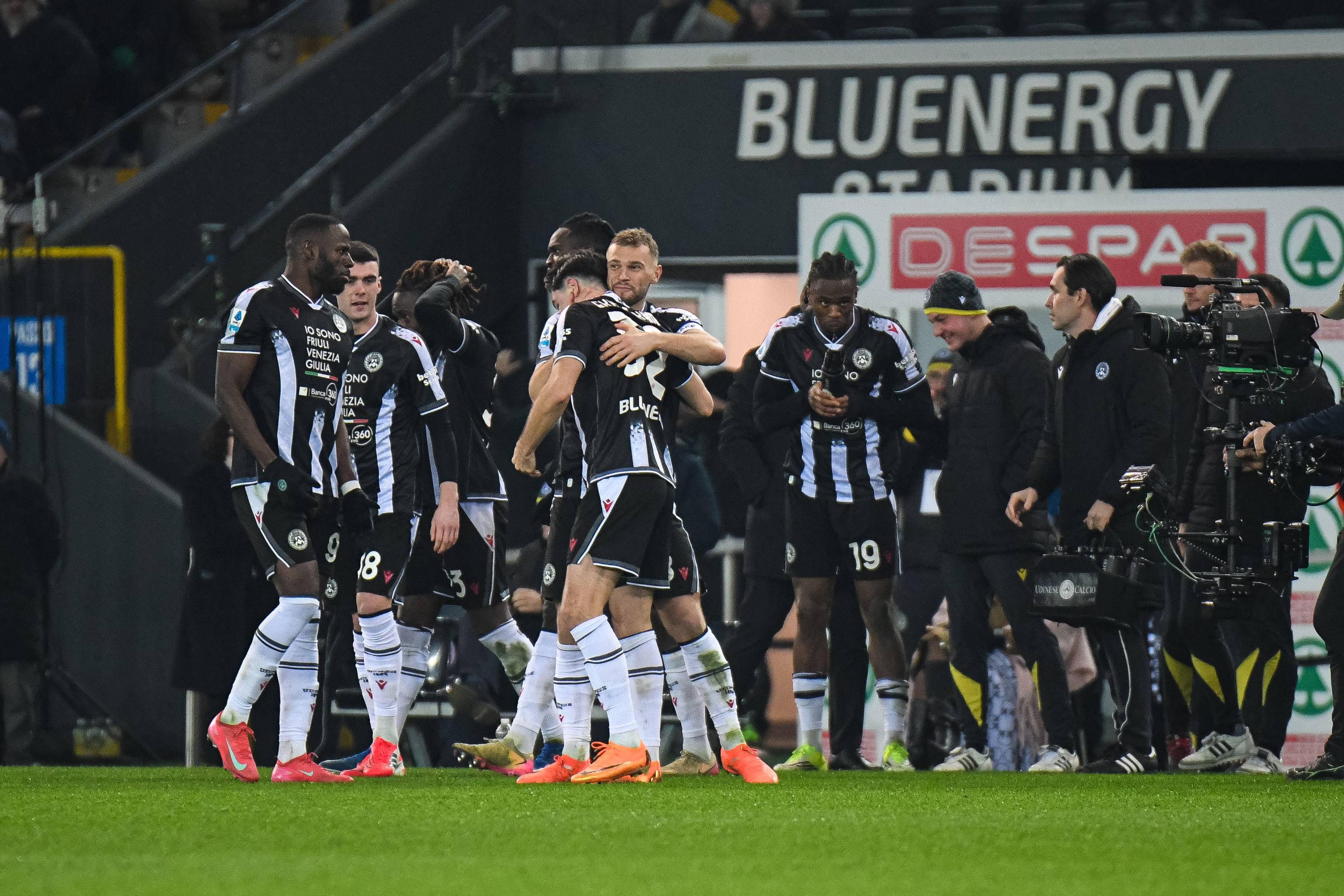 เมื่อวันที่ 2 กุมภาพันธ์ นักเตะของอูดิเนเซ่ฉลองประตู Xinhua/EPA