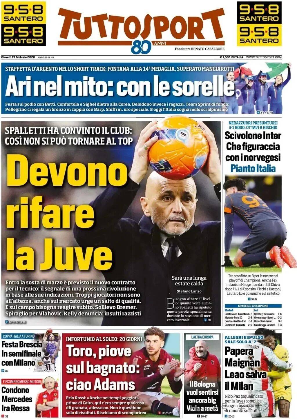 ยูเวนตุสต้องเผชิญกับศึกหนักหลังจากพ่ายแพ้อย่างหนักในนัดแรกของแชมเปียนส์ลีก; การสร้างทีมใหม่ในช่วงซัมเมอร์กำลังใกล้เข้ามาเมื่อผู้เล่นหกคนไม่ได้อยู่ในแผนของสปัลเล็ตติอีกต่อไป เบรเมอร์ แมตช์ อินเตอร์