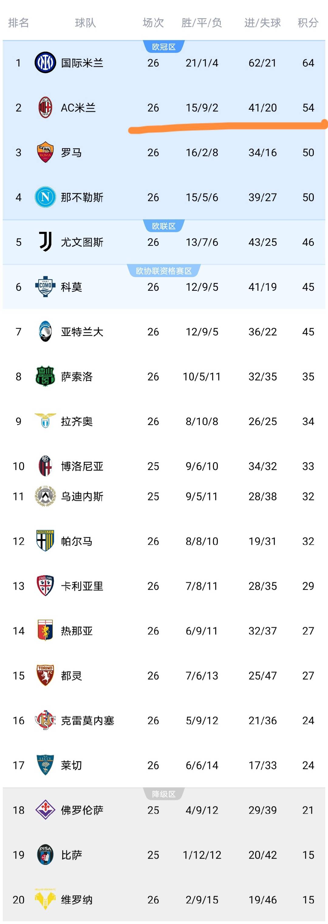 ตั้งแต่เมื่อคืนจนถึงช่วงเช้าตรู่ของวันนี้ มีการแข่งขัน 4 นัดในรอบที่ 26 ของเซเรีย อา ซึ่งประกอบไปด้วยทีมอย่าง เอซี มิลาน, โรม่า, และนาโปลี หลังจากการแข่งขันเหล่านี้ อันดับในลีกได้เปลี่ยนแปลงไป มาดูการเปลี่ยนแปลงกัน