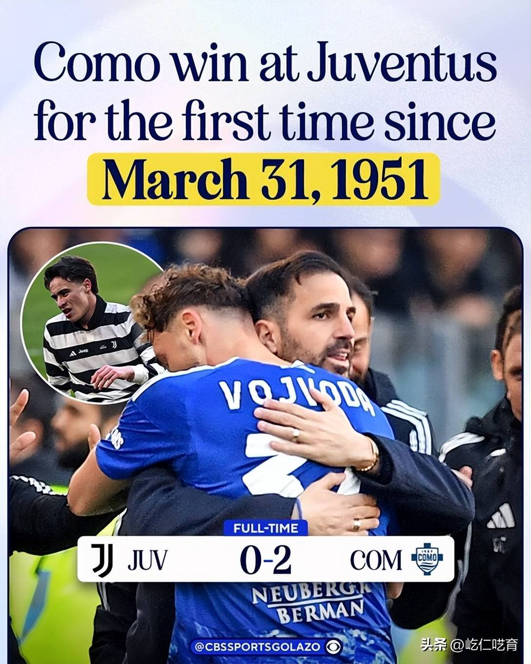 สำหรับโคโม พวกเขาสร้างประวัติศาสตร์ด้วยการคว้าชัยชนะนอกบ้านครั้งแรกในรอบ 75 ปีเหนือยูเวนตุส!