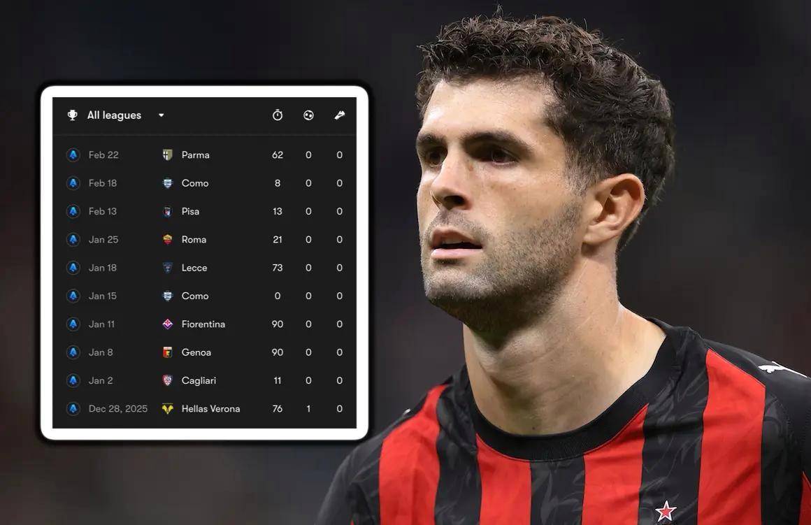 ประตูสุดท้ายของพูลิซิชย้อนกลับไปถึงวันที่ 28 ธันวาคม 2025 เมื่อเขาทำประตูเปิดในเกมชนะเวโรนา 3-0 นับตั้งแต่นั้นเป็นต้นมา กัปตันทีมชาวอเมริกันต้องเผชิญกับปัญหาการอักเสบของถุงน้ำที่กล้ามเนื้อไอเลียสโซแอส ซึ่งส่งผลให้ฟอร์มการเล่นลดลงอย่างมากและพลาดโอกาสทำประตูหลายครั้ง