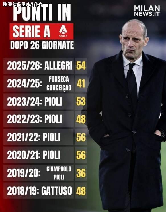 หลังจากผ่านไป 26 นัดในเซเรีย อา ฤดูกาลนี้ เอซี มิลาน สะสมได้ 54 คะแนน ซึ่งเป็นการปรับปรุงที่สำคัญเมื่อเทียบกับช่วงเวลาเดียวกันของฤดูกาลที่แล้วคะแนนสะสมของเอซี มิลาน หลังผ่านไป 26 นัดในฤดูกาลล่าสุดมีดังนี้: ฤดูกาล 2025/26 ภายใต้การคุมทีมของอัลเลกรี: 54 คะแนน; ฤดูกาล 2024/25 ภายใต้การคุมทีมของฟอนเซกา: 41 คะแนน; ฤดูกาล 2023/24 ภายใต้การคุมทีมของปิโอลี: 53 คะแนน; ฤดูกาล 2022/23 ภายใต้การคุมทีมของปิโอลี: 48 คะแนน;ฤดูกาล 2021/22 ภายใต้การคุมทีมของปิโอลี่: 56 คะแนน; ฤดูกาล 2020/21 ภายใต้การคุมทีมของปิโอลี่: 56 คะแนน; ฤดูกาล 2019/20 ภายใต้การคุมทีมของจามเปาโลและปิโอลี่: 36 คะแนน; ฤดูกาล 2018/19 ภายใต้การคุมทีมของกัตตูโซ่: 48 คะแนน; คะแนน 54 คะแนนในฤดูกาลนี้ถูกทำลายสถิติเพียงสองครั้งเท่านั้น คือ 56 คะแนนในฤดูกาล 2021/22 และ 56 คะแนนในฤดูกาล 2020/21 ซึ่งสะท้อนให้เห็นถึงความก้าวหน้าของทีม