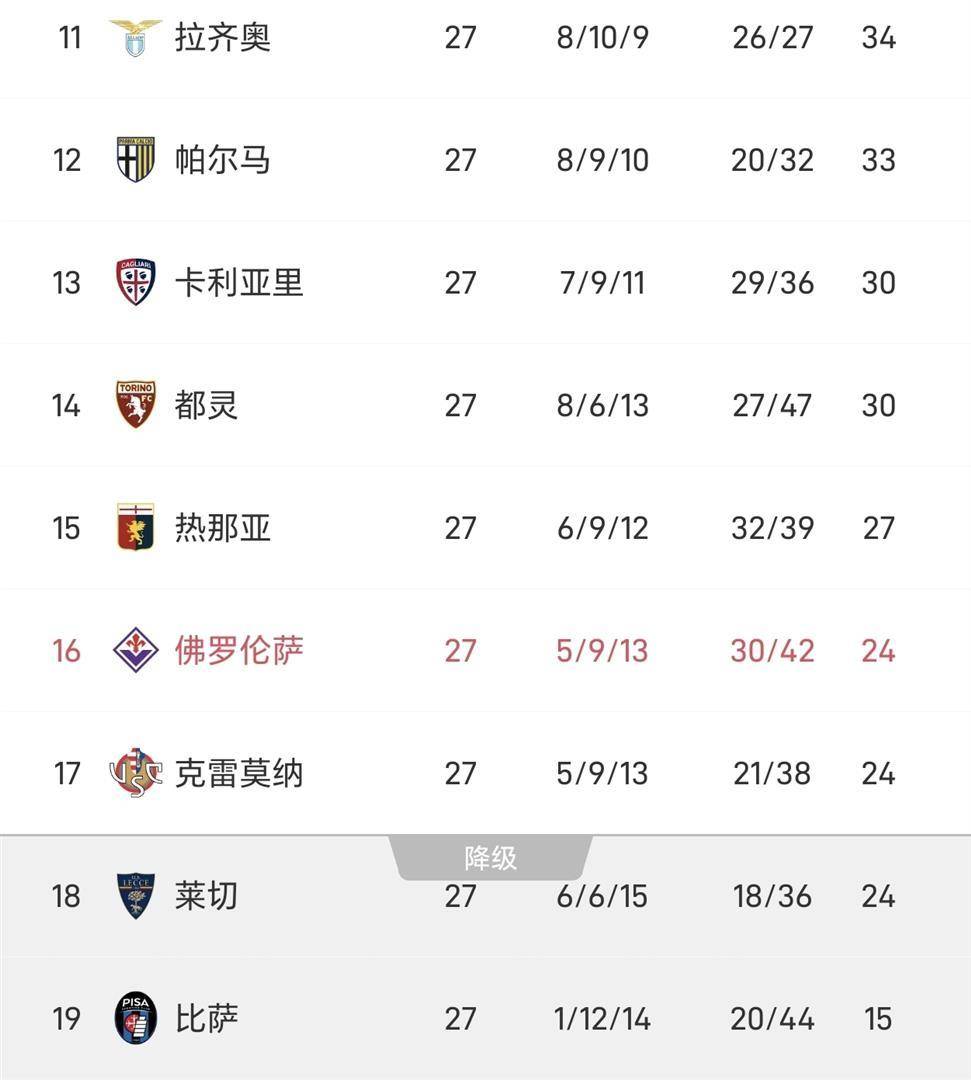 ทุกรอบ โดยเฉพาะการเจรจาโดยตรงระหว่างทีมตกชั้นเหล่านี้ อาจทำให้เกิดการเปลี่ยนแปลงอย่างมากในการจัดอันดับ ชัยชนะเหนือฟลอเรนซ์ของอูดิเนเซ่รอบนี้เป็นการแสดงออกโดยตรงที่สุด นี่ไม่ใช่แค่ชัยชนะที่คุ้มค่า 3 แต้มเท่านั้น แต่ยังเป็น "ตำแหน่งการ์ด" มูลค่า 6 แต้มโดยตรง เตะคู่ต่อสู้ให้ถึงสถานการณ์ที่อันตรายกว่า พิซซ่าเป็นตำนานที่บ้าน เกือบจะฆ่าความหวังสุดท้ายในการตกชั้น ห่างจากพื้นที่ปลอดภัย 9 แต้ม ซึ่งดูเหมือนจะไม่สามารถเข้าถึงได้โดยเหลือเพียง 11 รอบในลีก