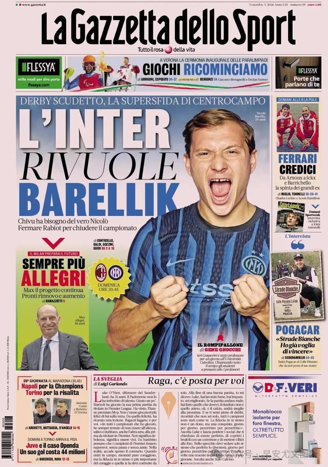 1. มิลาน ดาร์บี้ แชมป์ลีก มิดฟิลด์ตัวเก่งของ อินเตอร์ มิลาน ต้องการให้ บาร์เรร่า ฟื้นคืนชีพ Ziwo ต้องการ Nicolo ตัวจริงเพื่อหยุด Rabio และฆ่าความสงสัยของลีก