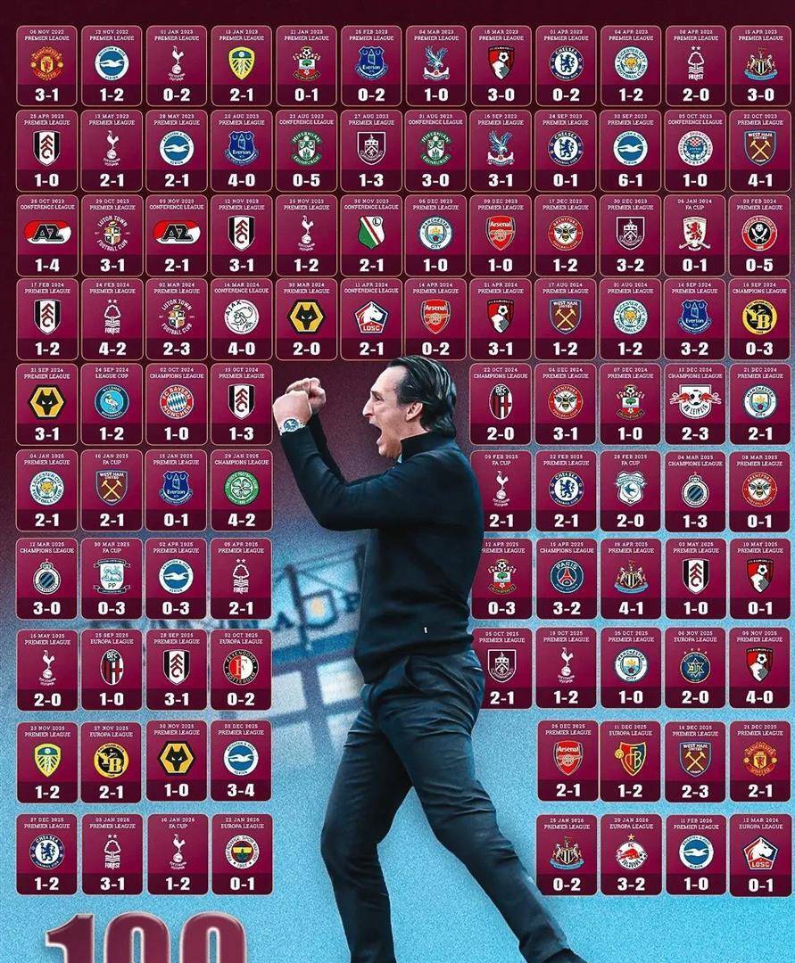 ชัยชนะครั้งนี้มีความหมายมากกับโค้ช Villa Emery< /strong>นี่คือชัยชนะครั้งที่ 100 ของเขาใน 181 เกมอย่างเป็นทางการนับตั้งแต่เขาเข้ารับตำแหน่งในเดือนพฤศจิกายน 2565 ด้วยประสิทธิภาพนี้ เขาได้กลายเป็นหัวหน้าโค้ชที่เร็วที่สุดในประวัติศาสตร์ของแอสตัน วิลล่า ที่บรรลุเป้าหมายสำคัญ