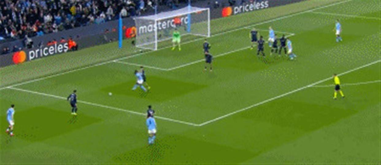ในความโกลาหล Brahin Dias ส่งบอลให้ประตูอีกครั้ง และ Vinicius ที่ตามมาที่ด้านหลังยิงบอล เห็นบอลเขากำลังจะเข้าตาข่าย เบอร์นาดอร์ ซิลวา กัปตันทีมแมนเชสเตอร์ ซิตี้ ซึ่งยืนอยู่บนเส้นประตู ยืดแขนออกโดยไม่รู้ตัวและปิดกั้นลูกบอล สนามกีฬาเอทิฮัดทั้งหมดเงียบลงทันที และทุกคนก็กลั้นหายใจและจ้องไปที่ผู้ตัดสิน Tilpan