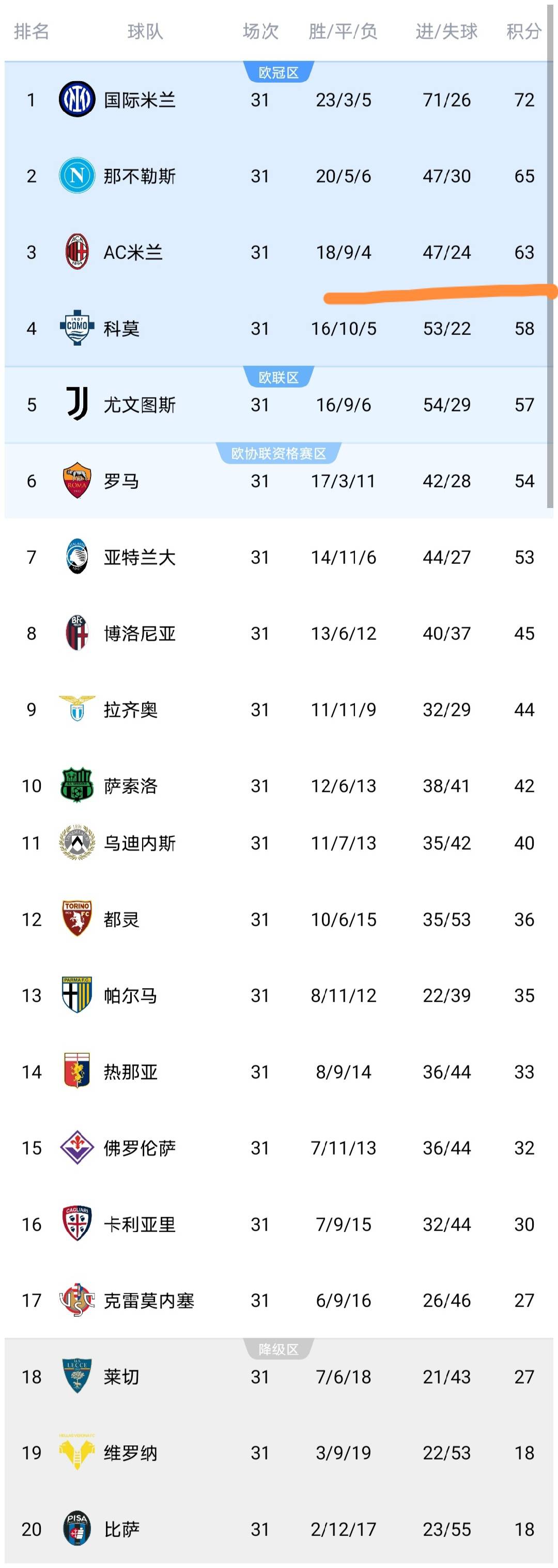 จนถึงตอนนี้ อันดับของกัลโช่ได้เปลี่ยนไปแล้ว: หลังจากที่เอซี มิลานแพ้ แต้มยังคงอยู่ที่ 63 แต้ม และถูกเนเปิลส์แซงหน้า นอกจากนี้ทั้งสี่ความร้อนแรง!