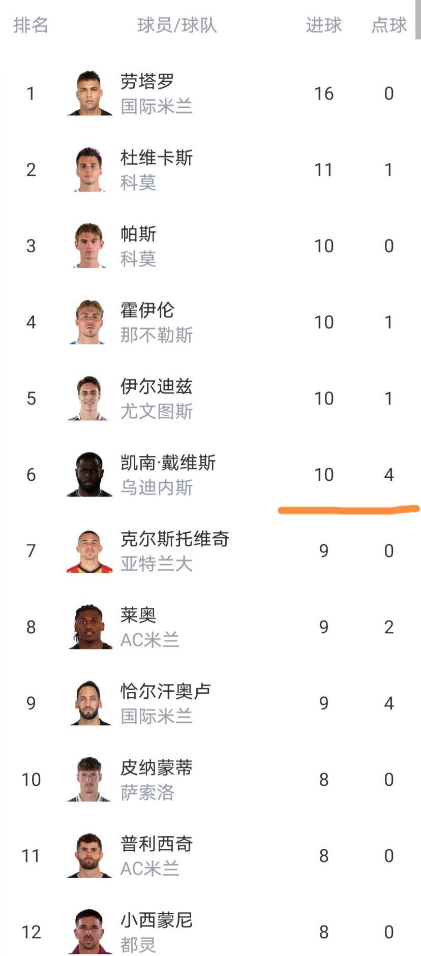 ผู้เล่นผู้ทำประตู 6 ทำประตูได้สองประตู และเลาตาโรเป็นผู้นำด้วย 5 ประตู