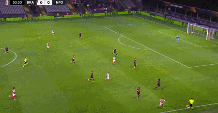 ในนาทีที่ 53 ผู้เล่นของ Braga Martinez ส่งแต้ม และ Gibbs White ได้เตะจุดโทษ