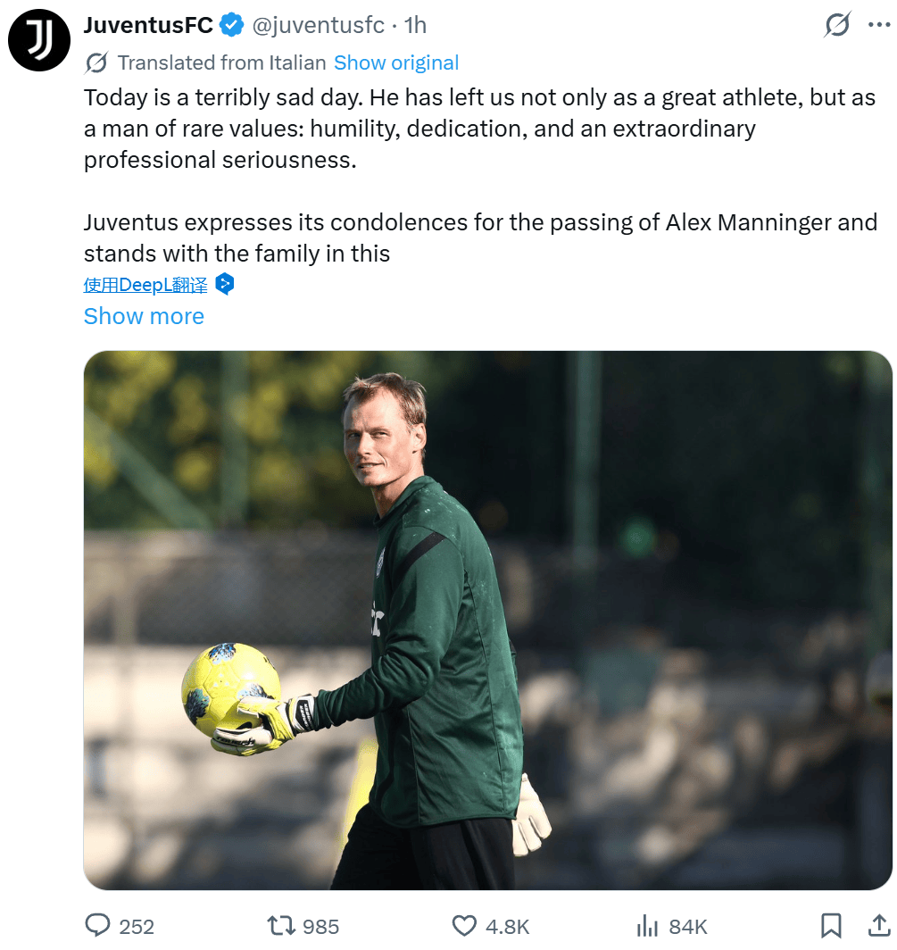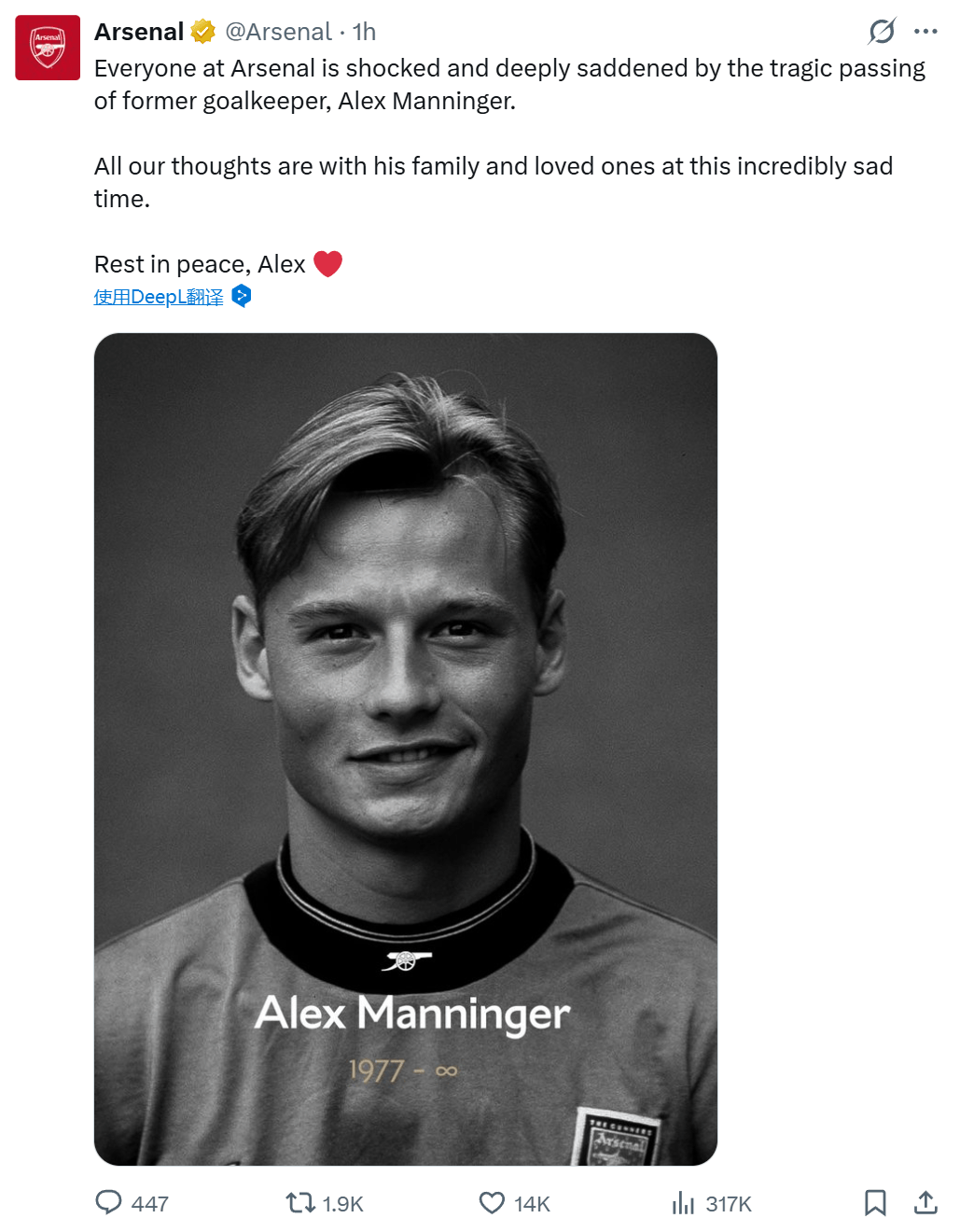 เมื่อวันที่ 16 เมษายน ตามเวลาท้องถิ่นในออสเตรีย ตามแหล่งข่าวของสื่อจำนวนหนึ่ง Manninger ผู้รักษาประตูชาวออสเตรียซึ่งเล่นให้กับ Arsenal และ Juventus เสียชีวิตจากอุบัติเหตุที่ชนกับรถไฟด้วยกันเมื่ออายุ 49 ปี