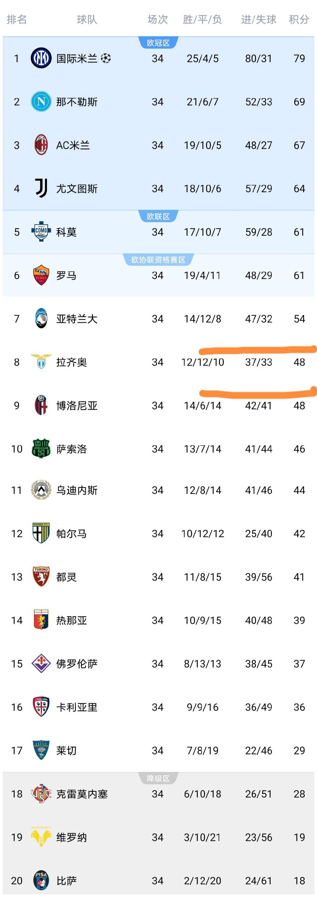 จนถึงตอนนี้ อันดับของกัลโช่ได้เปลี่ยนไปแล้ว: แอตแลนต้านำลาซิโอไป 6 แต้ม แอตแลนต้าตามหลังโรม่า 7 แต้ม และยังมีความหวังที่จะแข่งขันเพื่อชิงหกอันดับแรก