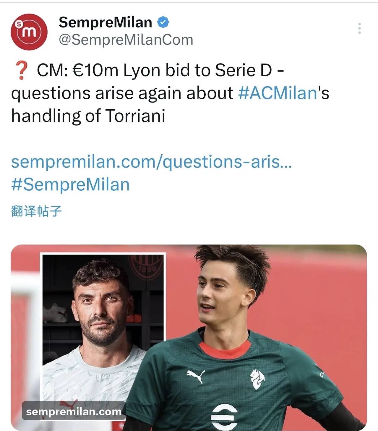 สื่ออิตาลีรายงาน: ลียงได้ยื่นข้อเสนอ 10 ล้านยูโรเพื่อซื้อตัวผู้รักษาประตูสำรองของเอซี มิลาน ทูลเลียนี โดยมีฟอนเซก้าชื่นชมเขาอย่างสูง