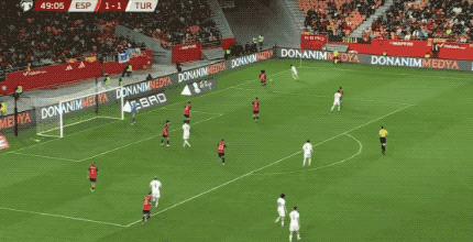 สองนาทีต่อมา ตุรกีได้ลูกฟรีคิกในแดนรุก ลูกบอลถูกส่งไปที่เสาไกล ซึ่งบูรัค ยิลมาซ กระโดดขึ้นโหม่งจักรยานอย่างสวยงาม ยูไน ซีมอน พยายามอย่างเต็มที่ที่จะปัดลูกออกไป