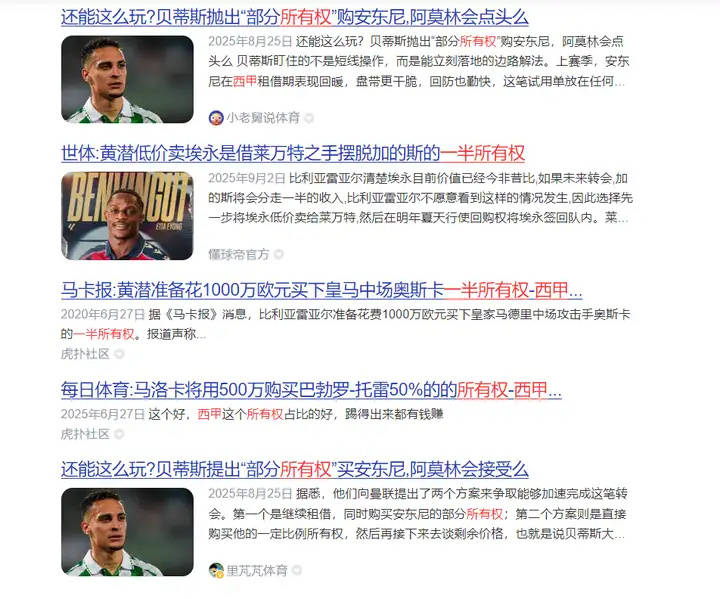 กลยุทธ์การโอนกรรมสิทธิ์ร่วมไม่ได้จำกัดอยู่แค่ในเซเรียอาเท่านั้น ลาลีกาก็ได้เห็นปรากฏการณ์นี้เช่นกัน ก่อนหน้านี้ เมื่อเรอัล เบติสขาดเงินทุนในการจ่ายค่าตัวและค่าเหนื่อยของแอนโธนี่ พวกเขาได้เริ่มเจรจากับแมนเชสเตอร์ ยูไนเต็ดเกี่ยวกับแนวทางนี้ โดยมีเจตนาที่จะได้ตัวนักเตะผ่านข้อตกลงดังกล่าว