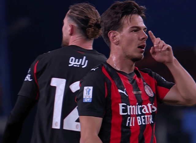 การแข่งขันเริ่มต้นขึ้นโดยทั้งสองฝ่ายเสมอกันอยู่ ไม่มีฝ่ายใดสามารถครองเกมได้เหนือกว่า จนกระทั่งถึงช่วงเวลาสำคัญที่ Højlund พุ่งพลังอย่างเต็มที่และเปลี่ยนสมดุลของเกม ในนาทีที่ 39 Højlund รับบอลในเขตโทษ ใช้ร่างกายของเขาขัดขวางกองหลังของ AC Milan ก่อนจะหมุนตัวและส่งบอลข้ามต่ำเข้าไป ผู้รักษาประตูและกองหลังที่เสาใกล้ไม่สามารถเคลียร์บอลได้ ทำให้ Nunes วิ่งเข้ามาโดยไม่มีการประกบและยิงเข้าประตูไปอย่างง่ายดาย นาโปลีขึ้นนำ 1-0