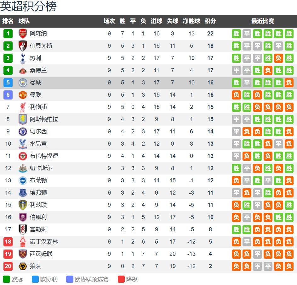 หลังจากผ่านไปเก้าสัปดาห์ของพรีเมียร์ลีกอาร์เซนอลนำเป็นจ่าฝูงด้วยคะแนนนำสี่แต้ม โดยมีบอร์นมัธตามมาเป็นอันดับสอง ท็อตแน่ม ฮ็อตสเปอร์อยู่ในอันดับสาม และซันเดอร์แลนด์ที่เพิ่งเลื่อนชั้นขึ้นมาอยู่ในอันดับสี่ –อันดับสี่อันดับแรกที่ไม่มีใครคาดคิดได้เลย!แมนเชสเตอร์ ซิตี้ และแมนเชสเตอร์ ยูไนเต็ด ต่างมี 16 คะแนนเท่ากัน โดยเป๊ป กวาร์ดิโอลา ทำผลงานได้เหมือนกับอดีตกุนซืออย่าง อาร์แซน เวนเกอร์ พรีเมียร์ลีกฤดูกาลนี้ดูเหมือนจะพลิกผันอย่างสิ้นเชิง เวลาผ่านไปอย่างรวดเร็ว และบางทีอาร์เซน่อลอาจพร้อมที่จะคว้าแชมป์พรีเมียร์ลีกอีกครั้ง สู้ๆ นะ อาร์เซน่อล!