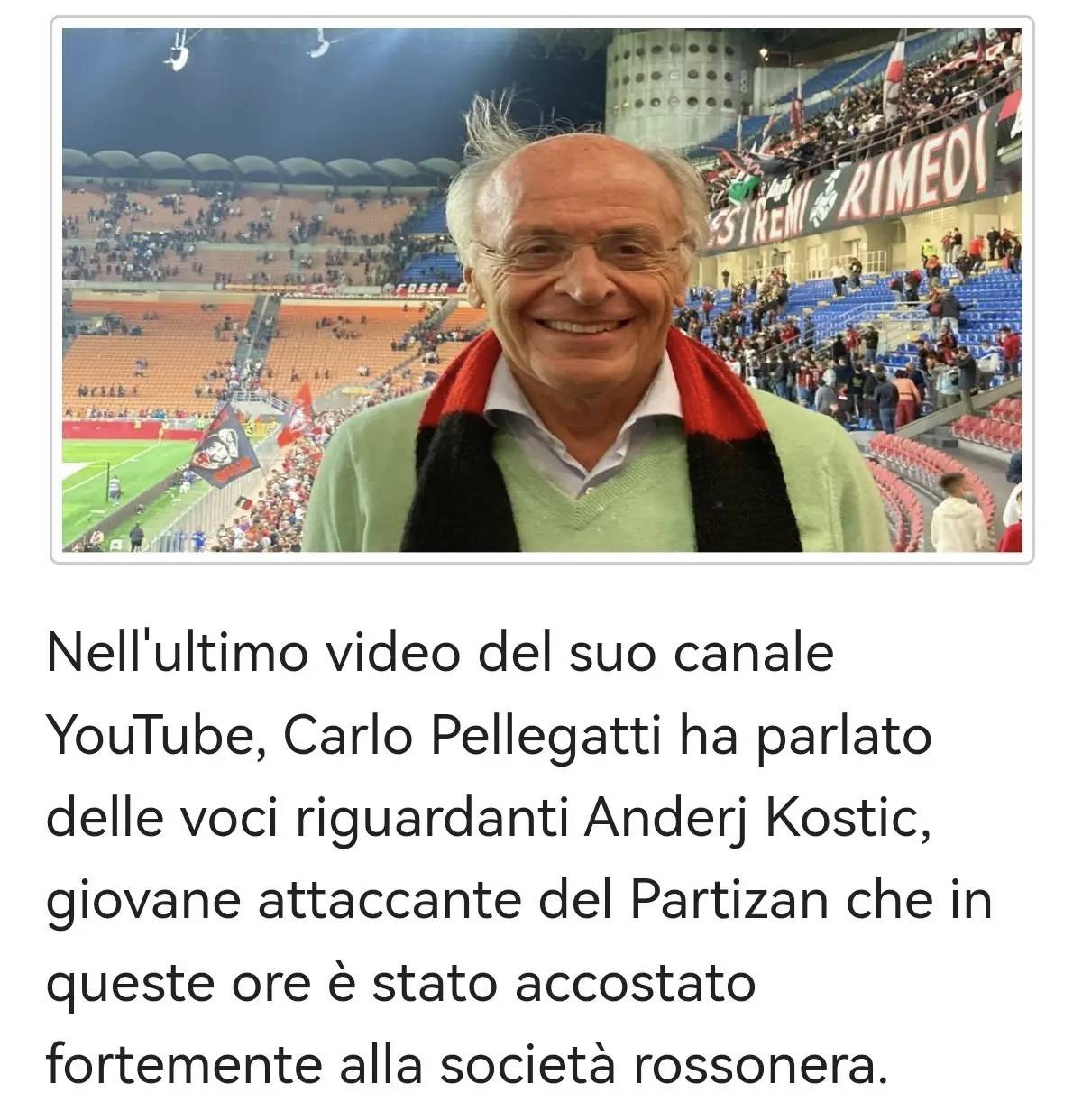 ในวิดีโอล่าสุดของช่อง YouTube ของเขา คาร์โล เปลเลกัตติ ได้กล่าวถึงข่าวลือเกี่ยวกับคอสติช กองหน้าดาวรุ่งจากปาร์ติซาน เบลเกรด ที่เพิ่งมีข่าวเชื่อมโยงอย่างหนักกับรอสโซเนรี: