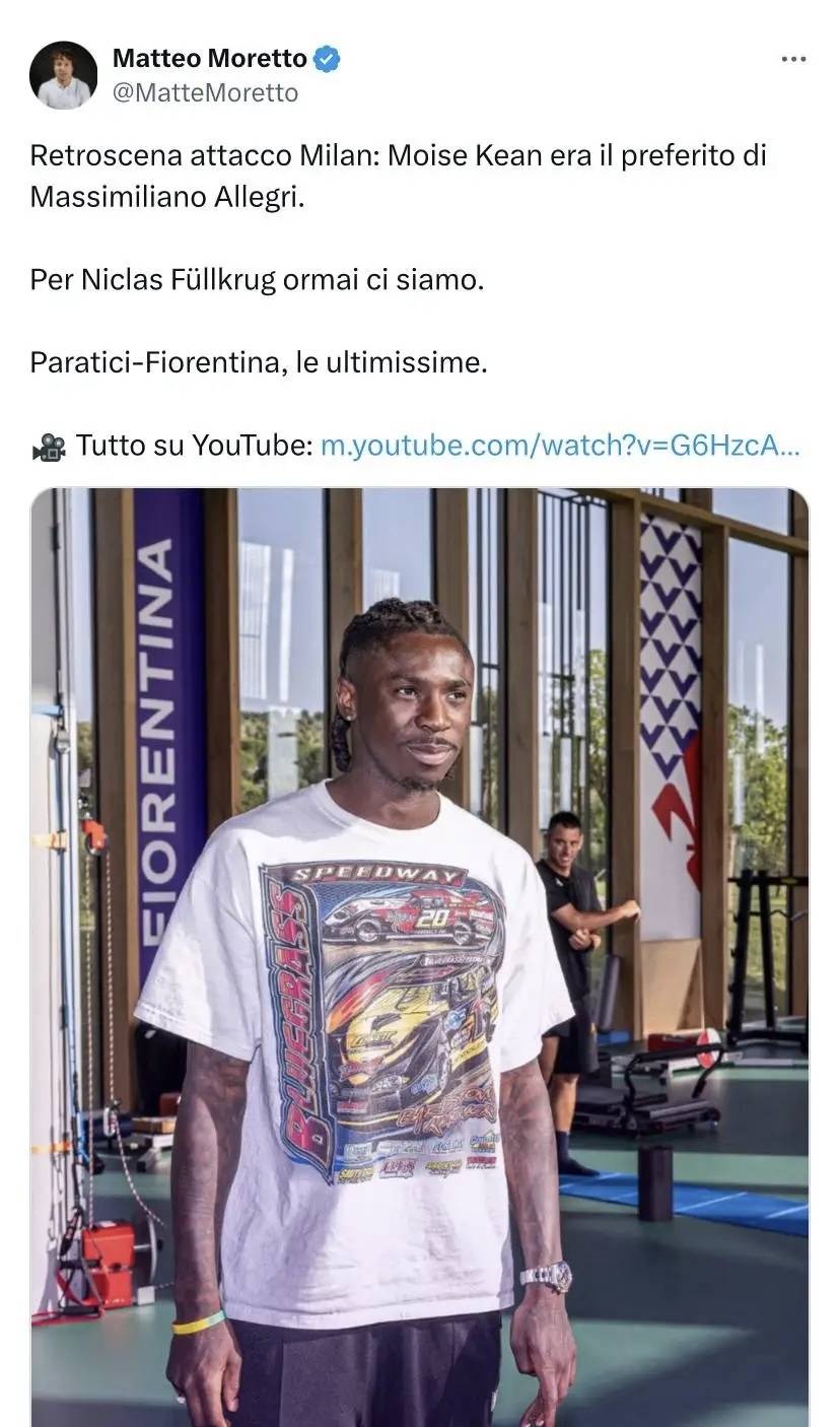 เคียน! อัลเลกรีหวังว่ามิลานจะเซ็นสัญญากับกองหน้าของฟิออเรนตินาเพื่อเสริมแนวรุกของพวกเขา แต่ตอนนี้ดูเหมือนจะเป็นไปได้ยากเนื่องจากดีลของฟิล ครุกเกือบจะเสร็จสมบูรณ์แล้ว