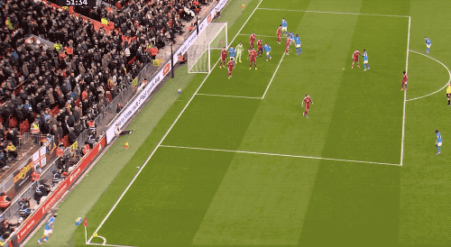 ในช่วงครึ่งแรก ลิเวอร์พูลได้นำห่างไป 2-0 ในนาทีที่ 52 วูล์ฟส์ได้ลูกเตะมุม อลิสซอนเซฟได้อย่างเหลือเชื่อ แต่บูเอโนโหม่งซ้ำจ่อๆ เข้าประตูไป ทำให้วูล์ฟส์ไล่มาเป็น 1-2