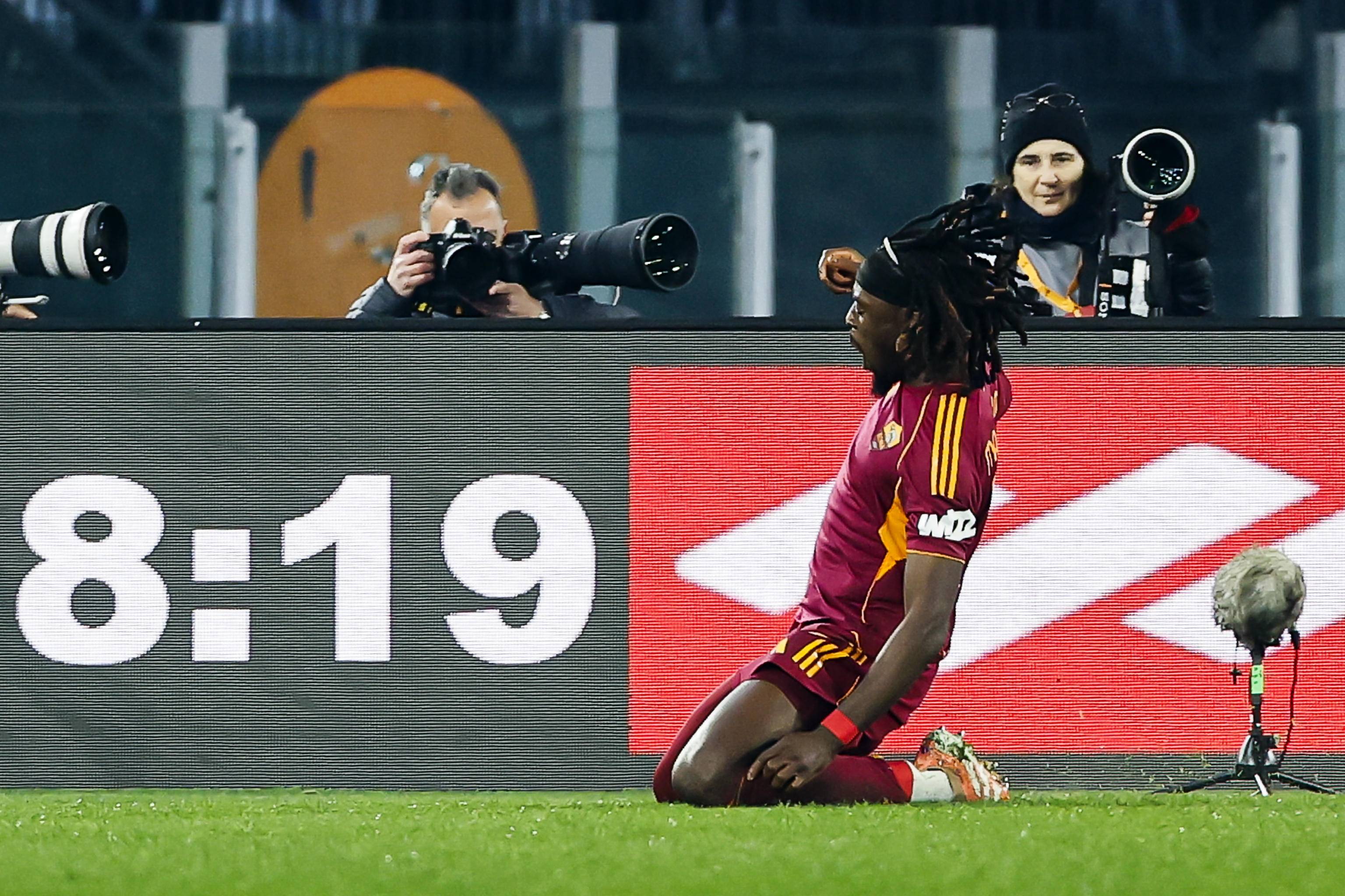 เมื่อวันที่ 29 ธันวาคม โคเน่ ผู้เล่นของทีมโรม่า ฉลองการทำประตูที่สองของทีม Xinhua/EPA